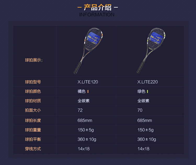 威尔夫全碳素壁球拍120/220